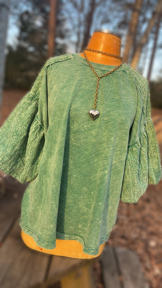 Texture Sleeve Green Top