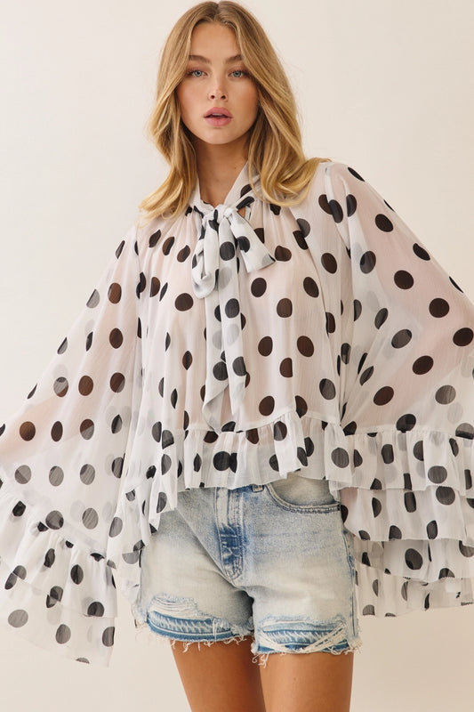 Polka Dot Chiffon Ruffle Top
